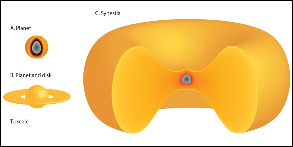 Figura 1: dibujo que muestra a escala el tamaño de una synestia.